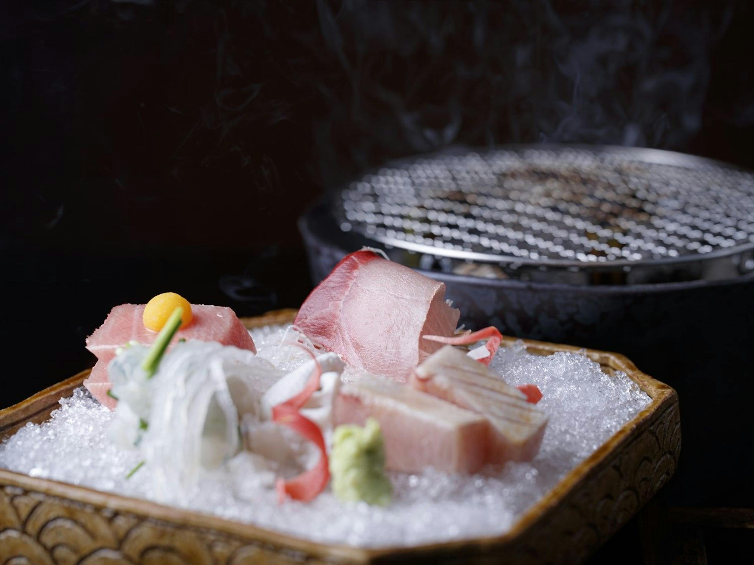 ふふ京都の夕食にはお造りを炭で炙って頂きます。