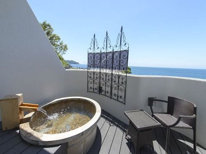 土肥の南部に位置する温泉宿で最近リニューアルしたため部屋も新しく、特に露天風呂付き特別客室ではテラス等も付いているため非常にリラックスできます。