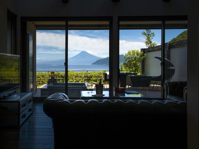 駿河湾の向こうに富士山が見える西伊豆の中でも超高級旅館です。